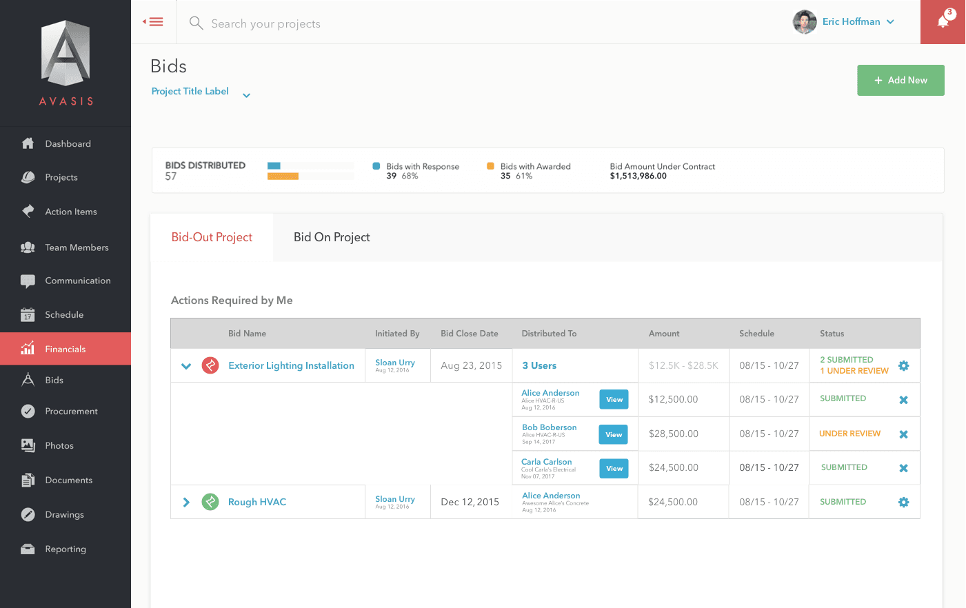 The AVASIS package also helped manage your company's bidding process, automatically notifying attached users on the project and keeping your bid process fast and competitive.