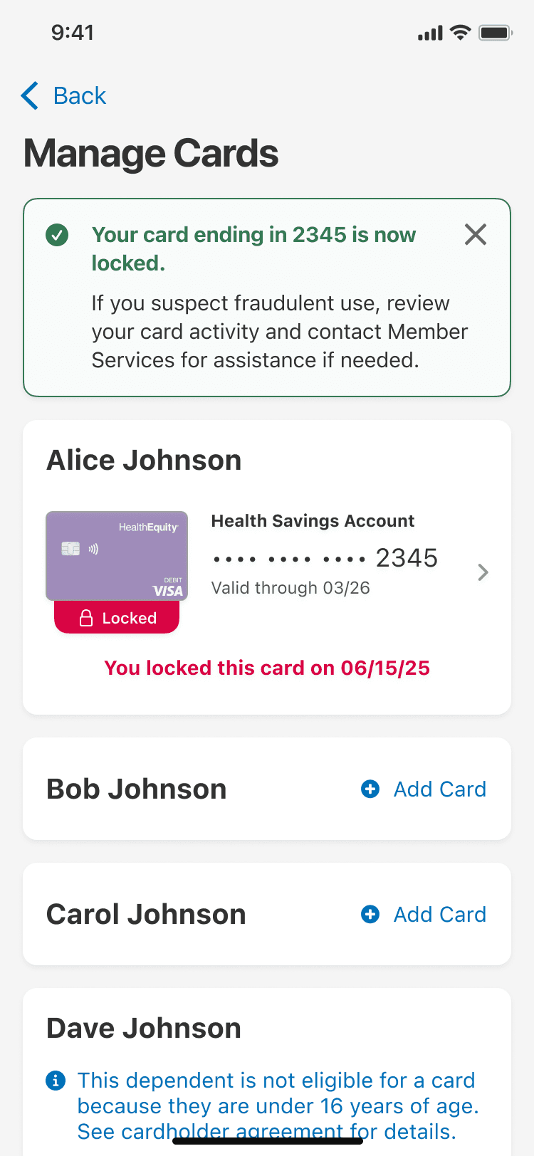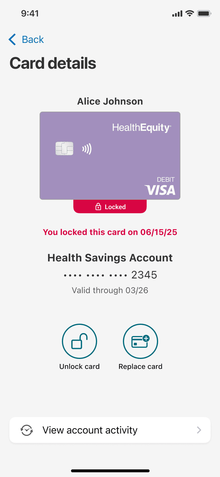 HealthEquity: Card Lock