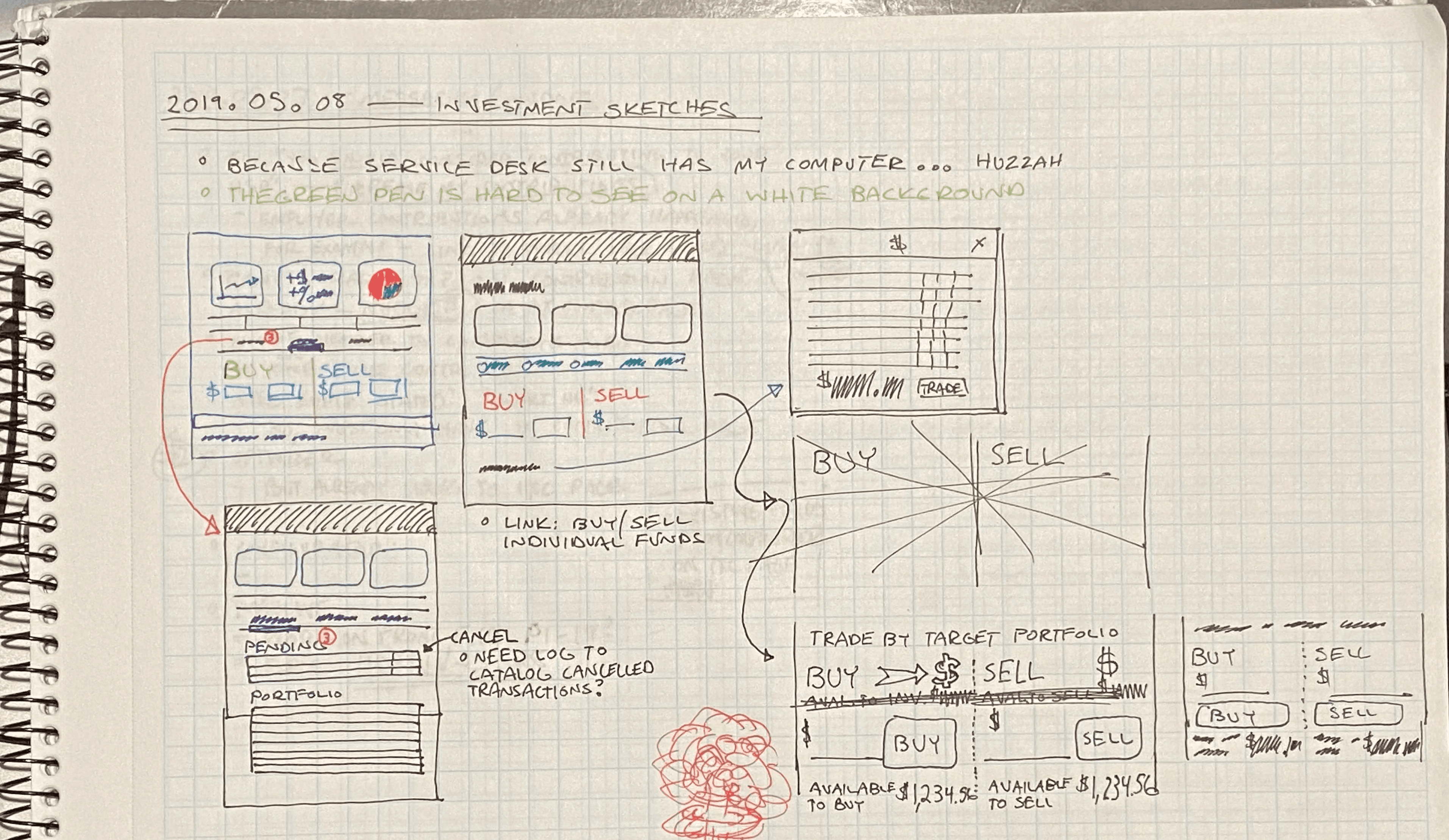 During some initial brainstorming at the whiteboard, we relied heavily on the expertise of the investment product managers who had more experience in that space than we did. This collaboration proved invaluable when starting to frame the process, improving empathy for investing members, whether experienced investors or beginners.